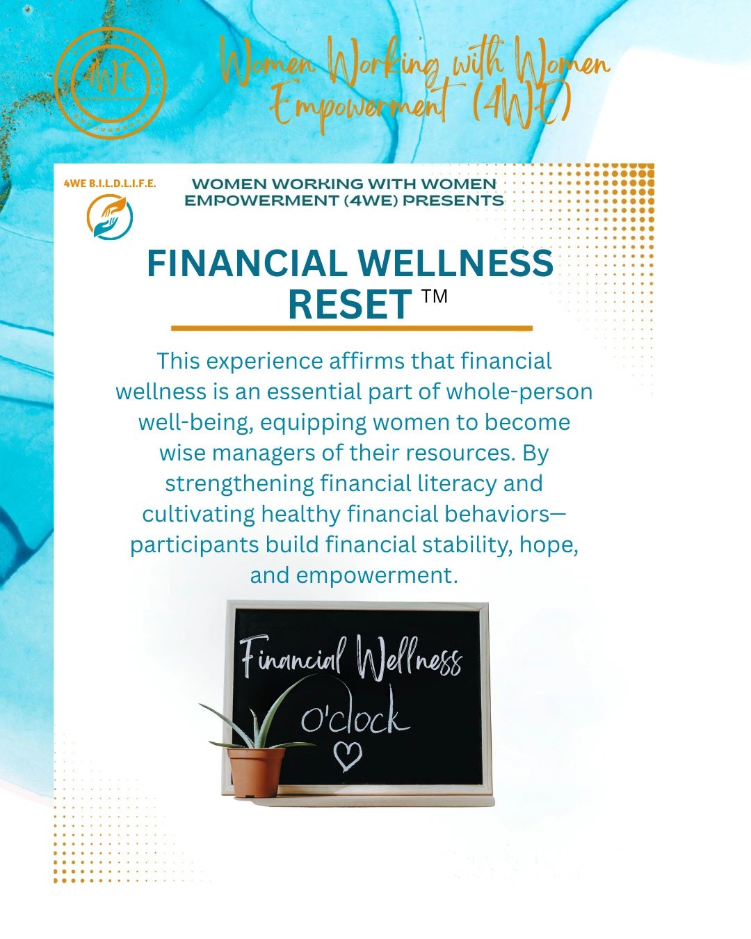By entering an event or program of Women Working with Women Empowerment (4WE), you are entering an area where photography, audio and video recording may occur. Your entry and presence on the event premises constitutes your consent to be photographed, filmed, and/or otherwise recorded and to the release, publication, exhibition, or reproduction of any and all recorded media of your appearance, voice, and name for any purpose whatsoever in perpetuity in connection with 4WE and its initiatives, including, by way of example only, use on websites, in social media, news and advertising.
